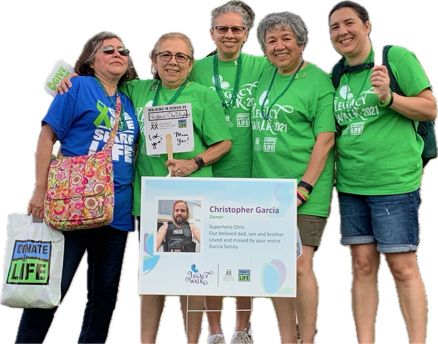 Sylvia Langhammer (in blue) and family at the Legacy Walk, honoring and celebrating Christopher’s life.