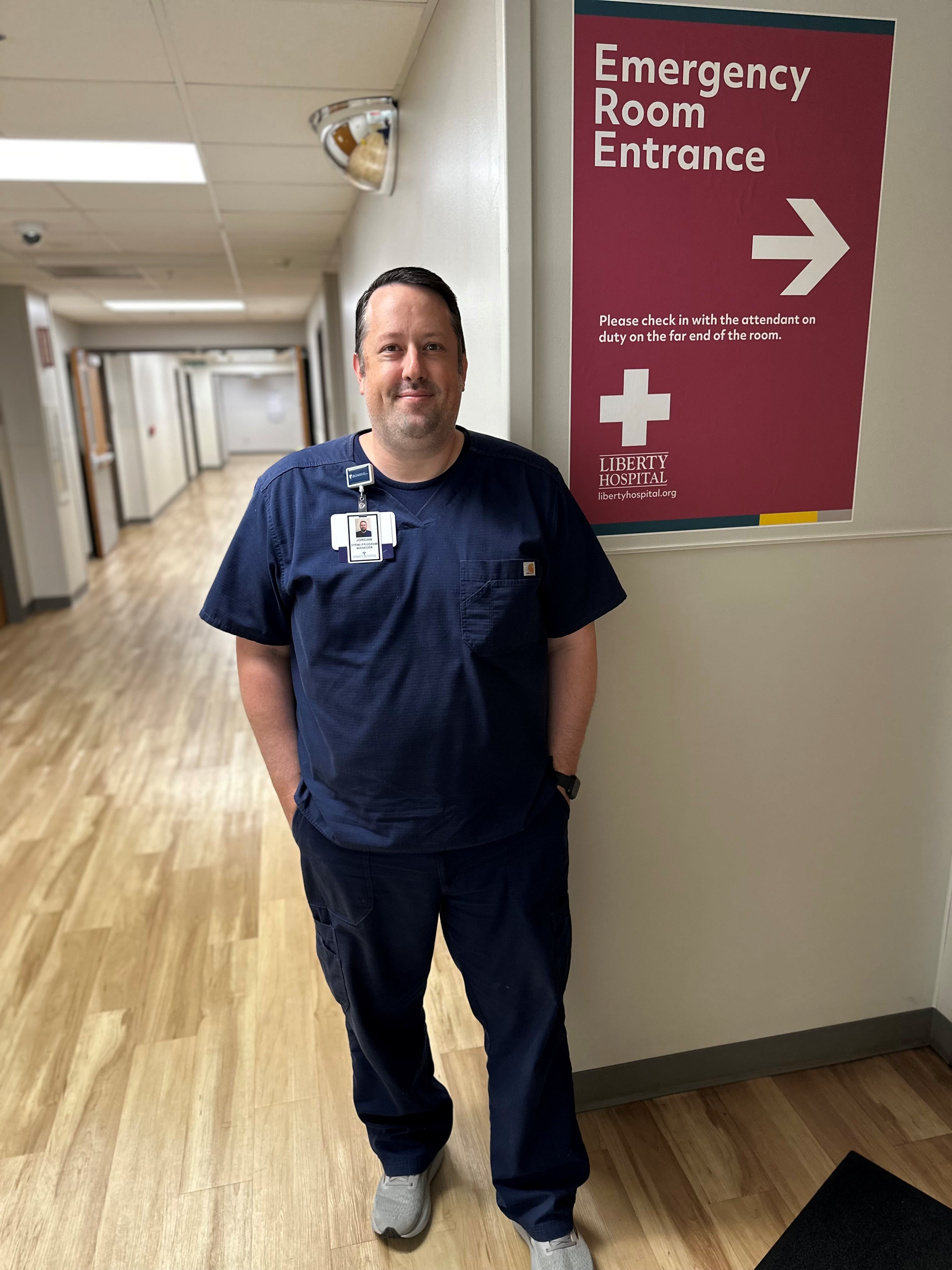 His journey to healthcare includes athletic training roles at high school and university athletic departments. Now he's found his home at Liberty Hospital.